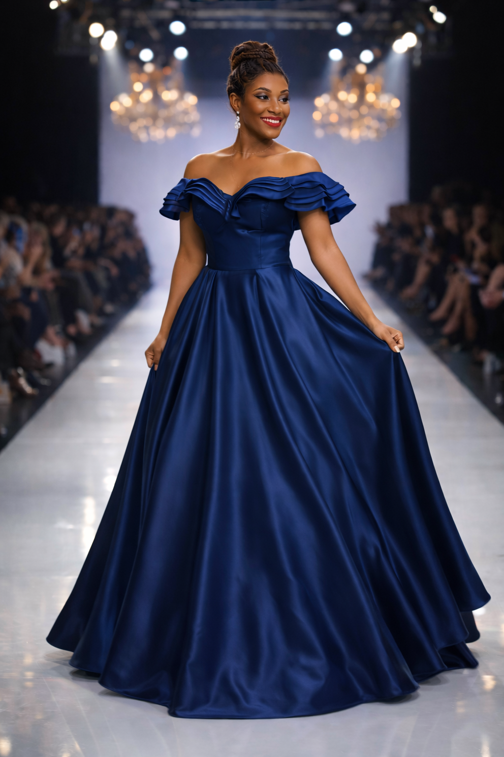 Sa coupe raffinée, son tombé majestueux et ses finitions soignées en font une pièce idéale pour les grands événements.